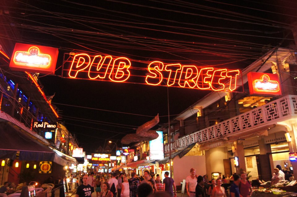 Wieczorem wybraliśmy na kolację na główną ulicę Pub Street , gdzie w bardzo przyjemnym otoczeniu zjedliśmy i popiliśmy piwem za $0,5 za kufel piwa :)