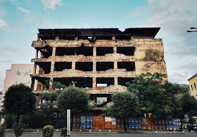 Wieczorem siedząc w knajpce, pytam o opuszczony wieżowiec, obok którego przechodziłam w południe. Niegdyś był to jeden z najpiękniejszych budynków w mieście, opowiada mi Marco. Mieścił się w nim bank, Staklena Banka, ale mieszkańcy nazywali go "Szklany Bank", bo był pięknie pokryty szkłem. Podczas wojny wszystko się jednak zmieniło, a Szklany Bank ze względu na swoje strategiczne położenie i wysokość stał się ulubieńcem snajperów, i tak z ekskluzywnego budynku banku, przekształcił w słynną wieżę snajperską.